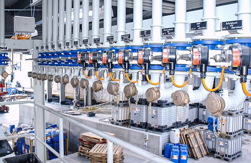 - Farben-Produktion: Lagerung und Verarbeitung von Flüssigstoffen